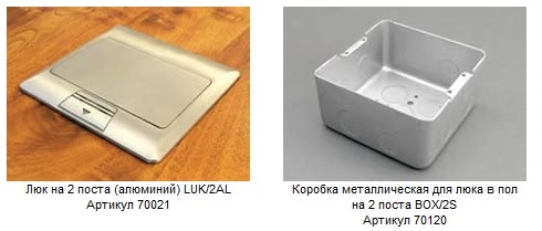 Система лючков LUK - это новое решение для организации рабочих мест в открытых интерьерах: офисы, операционные залы, кассы магазинов, банки, школы, выставочные центры, аэропорты, хранилища, серверные, переговорные комнаты и помещения административного назначения.Выполненные из четырех видов материалов: пластика (АБС Bayer), алюминия (AL Alloy), латуни и стали. Эти продукты - законченные решения для организации "рабочего места" в зоне, где требуется скрыть отрытый монтаж и отличаются высокой прочностью, надежностью, имеют дизайн "High - tech" и идеально сочетается с любым видом интерьера и отделочными материалами полов. Серия лючков LUK ЭКОПЛАСТ предназначена укладке кабельных пучков и проводов силового электропитания и информационных сетей под (внутри) полом. Кабельные пучки протягиваются в гофрированных трубах тяжелого типа под заливку в бетон или укладываются в лотки стальные в случае покрытия типа "фальш-пол". Система лючков LUK может дополняться миниканалами или кабель-каналами, распределительными коробками, гофротрубами или жесткими гладкими трубами,элементами крепежа, стяжками и хомутами кабельными и установочными розетками и выключателями для комплексного оснащения здания или помещения. Серия лючков LUK спроектирована на различное количество модулей (розеток): от 1.5 до 8 (размером 45*45 мм). Степень защиты от IP20 до IP40.