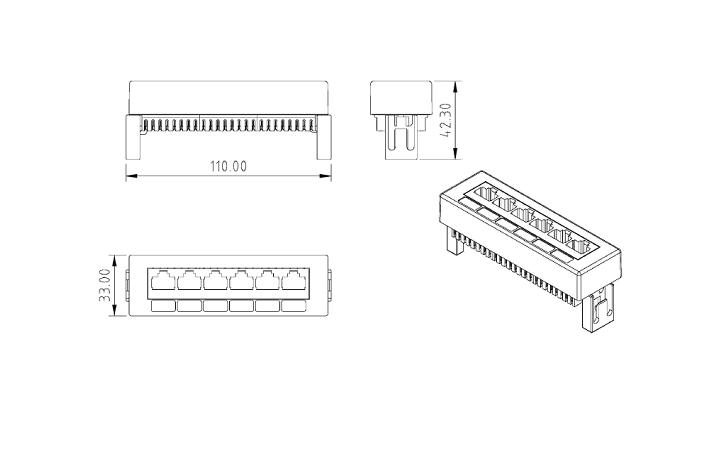 Патч-панель монтаж на скобу UTP 6xRJ45 кат.5е, Dual Type IDC, цвет черный.
