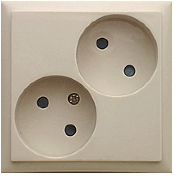 Двухместная розетка скрытой проводки устанавливается в стандартный однопостовой подрозетник. Отверстия розетки расположены таким образом, чтобы провода установленных электроприборов не оказывали взаимного влияния, в том числе нагрева друг на друга.