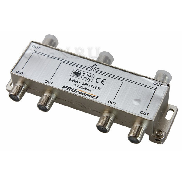 ДЕЛИТЕЛЬ ТВ х 6 под F разъём 5-1000 МГц PROCONNECT цены опт и розница скидки
