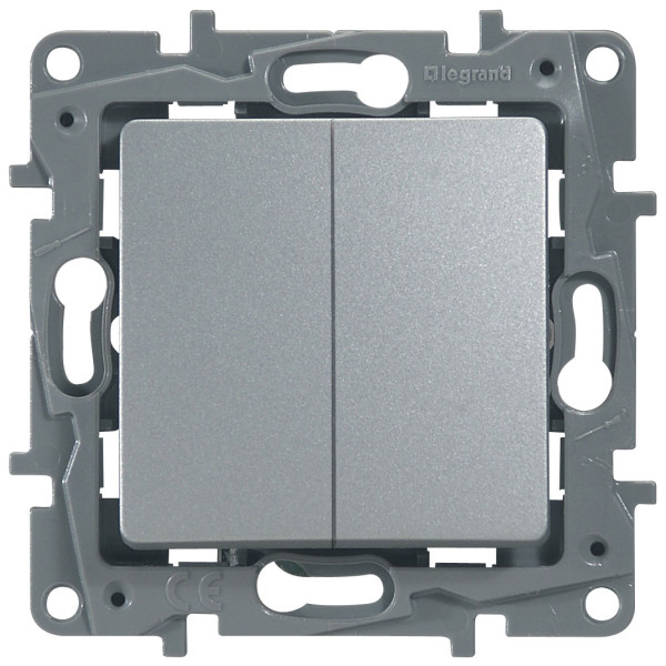 LEGRAND 672412 Выключатель/переключатель 2-клавишный, 10AX, с автоматическими зажимами, алюминий, ETIKA