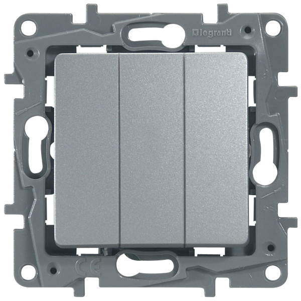 LEGRAND 672413 Выключатель/переключатель 3-клавишный, 10АХ, с винтовыми зажимами, алюминий, ETIKA
