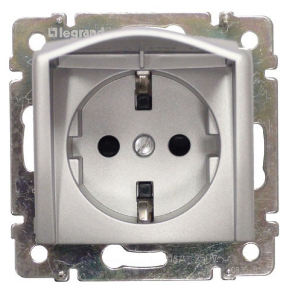 Розетка электрическая Legrand Valena, 2к+З, 16А, 58x51, цвет: алюминий, винтовые зажимы, крышка