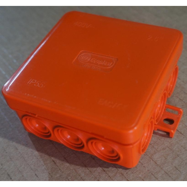43255HF JBL085 Коробка огн. E110, о/п 85х85х38мм, без галогена, 12 вых., IP55, 6P, (0,15-2,5 мм²), цвет оранж. Экопласт