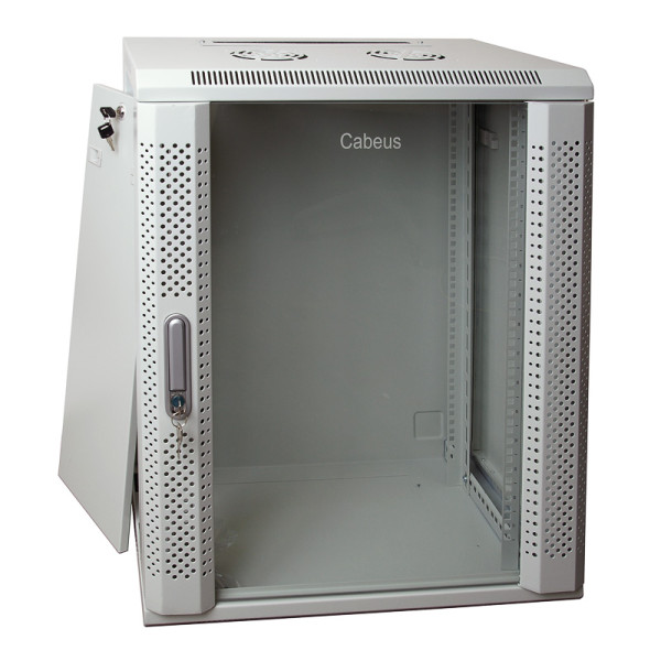 Шкаф телекоммуникационный настенный Cabeus, 19", 15U, 769х600х350 (ВхШхГ), дверь: стекло, разборный, цвет: серый, (съемная панель для крепления шкафа к стене) Cabeus