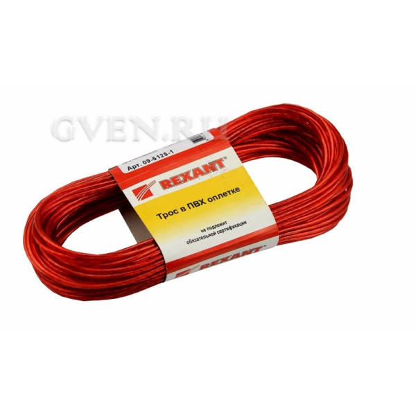 Трос стальной в ПВХ изоляции d=2.5 мм, моток 20 метров, КРАСНЫЙ REXANT цены опт и розница скидки